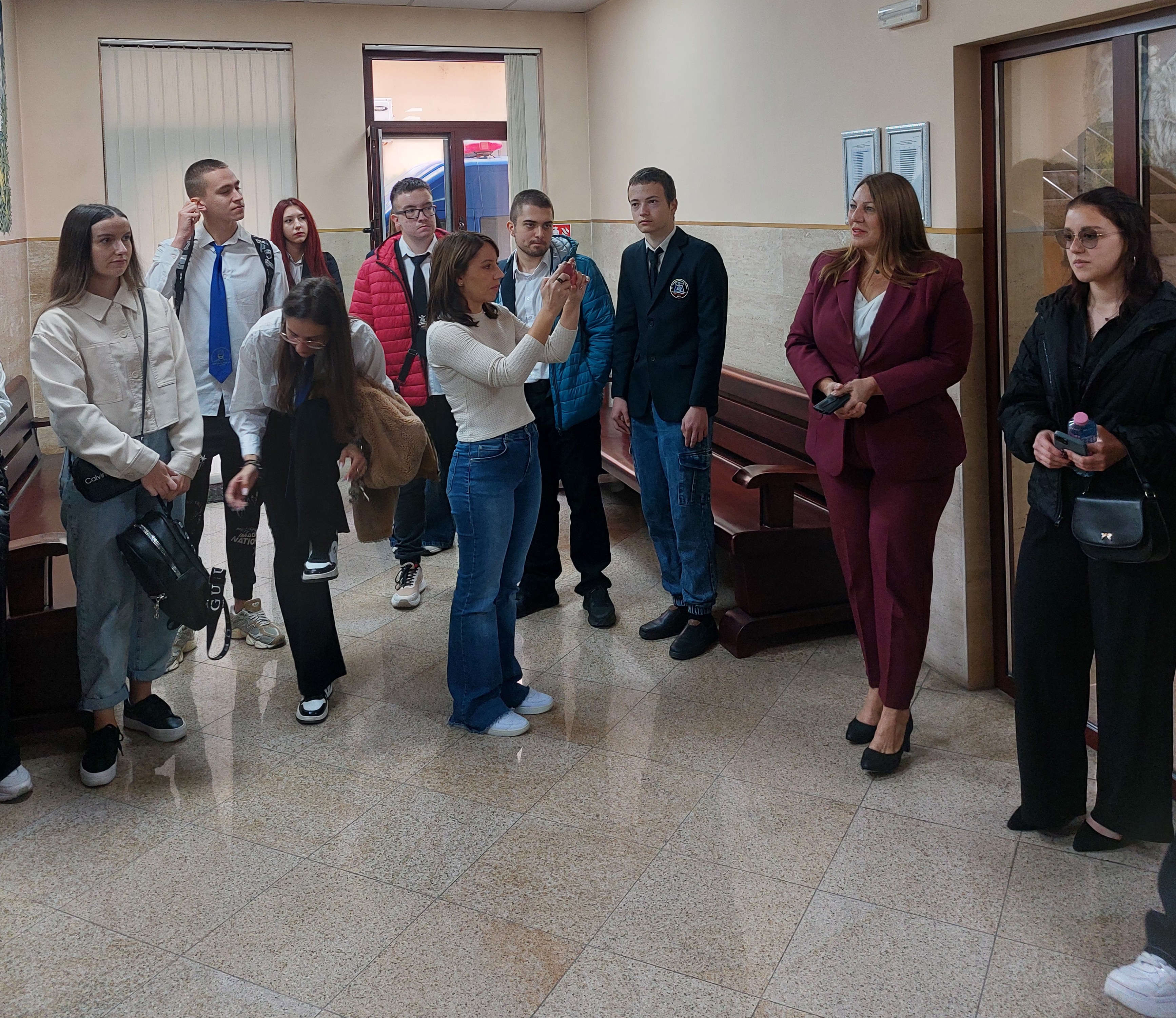 В началото младежите бяха приветствани от председателя Василка Желева, която им разказа накратко за историята на съда и за основните му функции като орган на съдебната власт. След това гостите имаха възможност да се запознаят отблизо с работата на съдиите и съдебните служители. Посетени бяха службите Регистратура и Съдебно деловодство, както и кабинет на съдия.